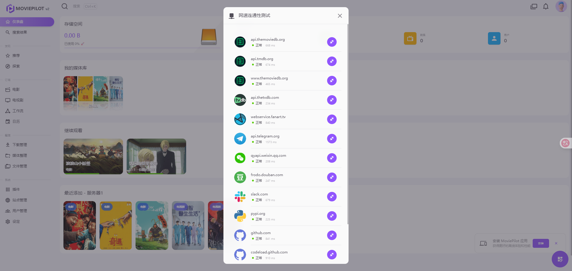 进入mp2,进行网络连通性测试,可以访问到TMDB了