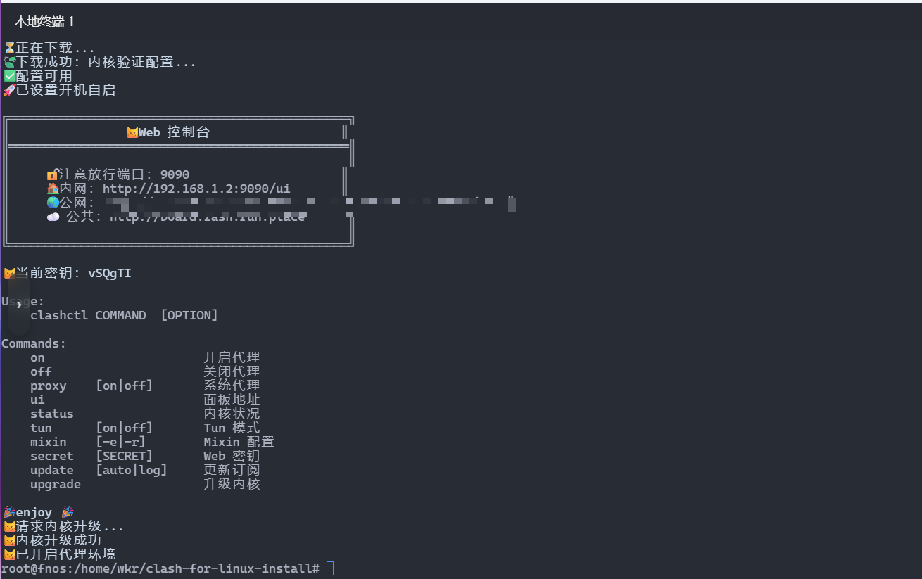 尽管飞牛论坛有很多装clash的教程,但都是基于docker或者配置单独的旁路由,较为占资源和麻烦。再逛linux.do论坛时无意间发现一个 [clash-for-linux-install](https://github.com/nelvko/clash-for-linux-install) 项目,可以直接在终端安装和配置clash,界面友好,很适合服务器等无桌面的环境。